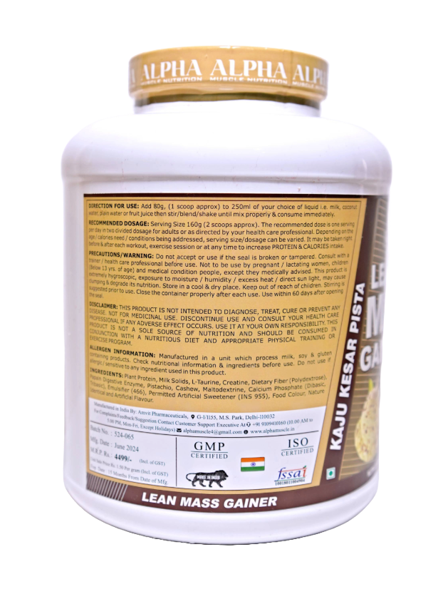 Alpha Muscle Lean Mass Gainer | High Protein | 52g Protein | 3g Creatine | 600 Kcal